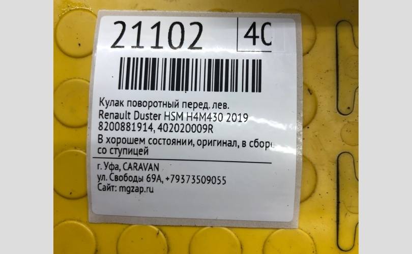 Кулак поворотный Renault Duster 2019 8200881914 HSM H4M430, передний левый