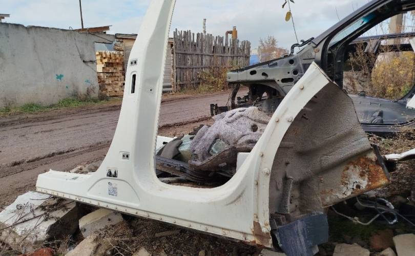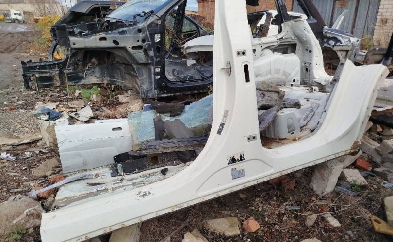 Порог левый с центральной стойкой и аркой заднего крыла на Фольксваген Туарег II поколения в кузове НФ. Дорестайлинг до рестайлинг 2010 2011 2012 2013 2014 год. Цвет белый
