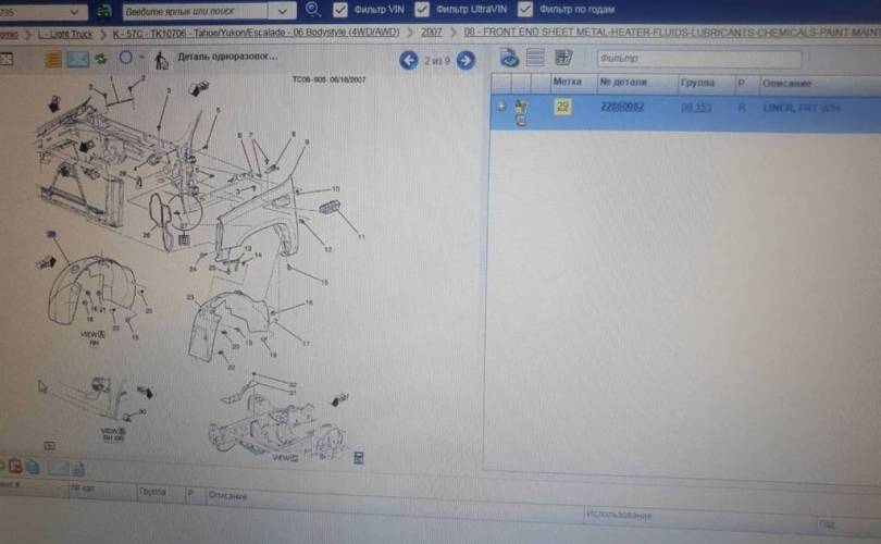 Подкрылок Cadillac Escalade III 06-14 г 22860082 GMT900 L92, передний правый