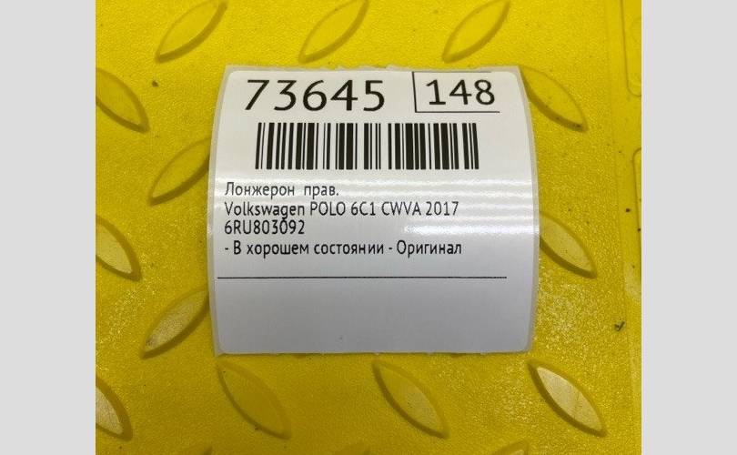 Лонжерон Volkswagen POLO 2017 6RU803092 6C1 CWVA, правый