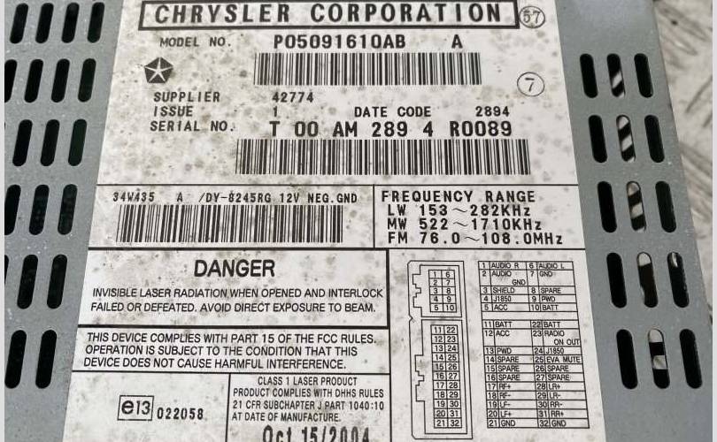 Магнитола Chrysler Grand Voyager IV (2001-2007) 2004 P05091610AB 2.5 CRD