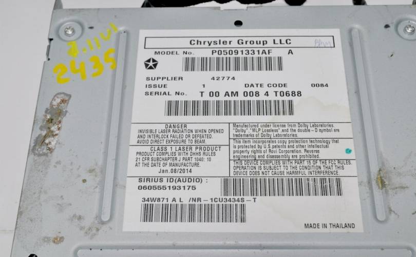Аналог: 5091331AF, 5091331AG, 68245851AB, 68282481AB, 68282481AA, 68282481AC, 68282481AD, 68282481AE, 68325237AA, 68325237AB, 68363307AA, 68363307AB, 68368206AA, 68368206AB, 68433488AA, 68433488AB, 68485778AA