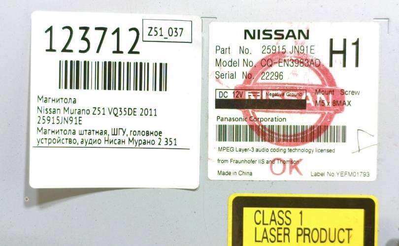 Магнитола Nissan Murano 2011 25915JN91E Z51 VQ35DE