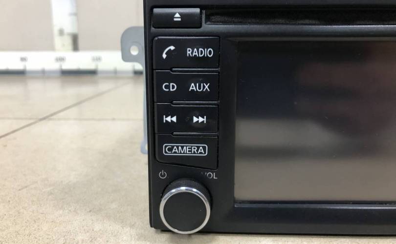 Оригинал. Отсутствует накладка на правой нижней клавише магнитолы. Потертости. Деталь демонтирована с автомобиля Nissan Sentra B17. Год выпуска 2014. Цвет кузова Серебристый. Код цвета ZBD. Привод Передний. Трансмиссия Вариатор. Тип кузова Седан. Модель двигателя HR16DE объемом 1.6 литра. Руль Левый.