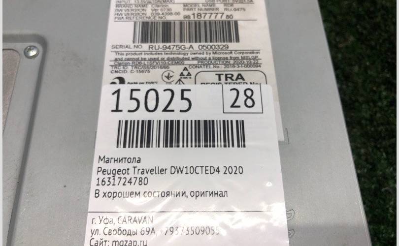 Магнитола Peugeot Traveller 2020 1631724780 DW10CTED4