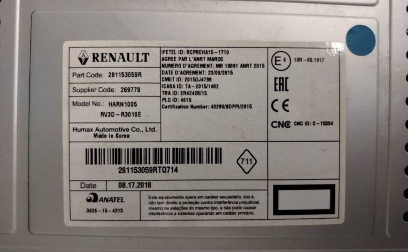 Магнитола Renault Sandero Stepway 2018 281153059R X52 K7M812