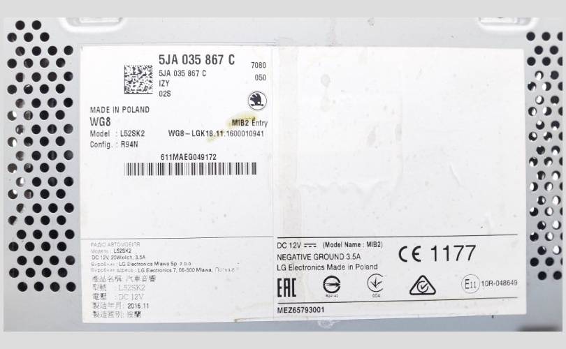 Магнитола Skoda Rapid 2017 NH3
