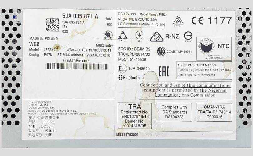 Магнитола Skoda Rapid 2017 NH3