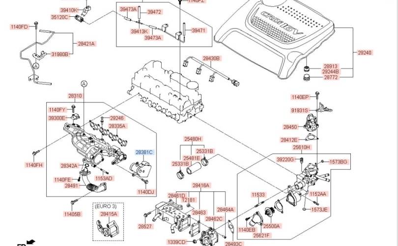 Механизм изменения геометрии впускного коллектора Hyundai Grand Santa Fe