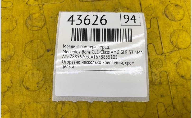 Молдинг бампера Mercedes-Benz GLE-Class 2020 A1678855105 AMG GLE 53 4MATIC+, передний