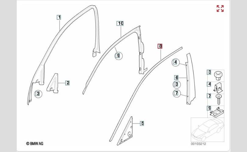 Верхний молдинг левой передней двери.