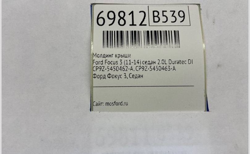 Молдинг крыши Ford Focus 3 (11-14) СЕДАН 2.0L DURATEC DI TIVCT (154PS) 2012 (контракт)