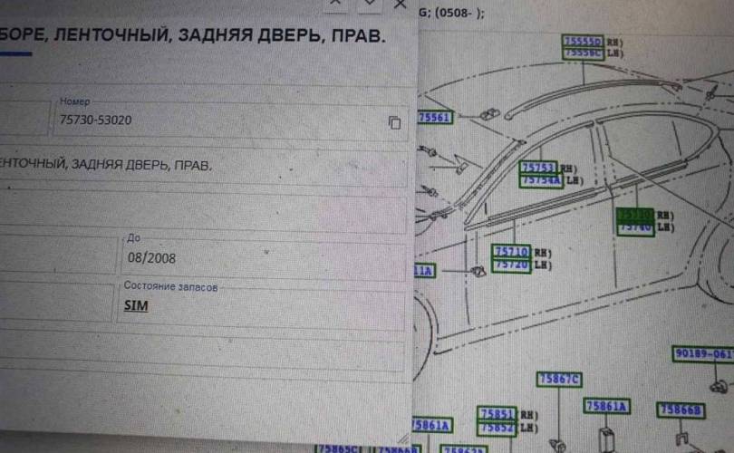 Оpигинaл идеал Молдинг стекла задней правой двери нижний Lexus IS 06-14г 7573053020 75730-53020