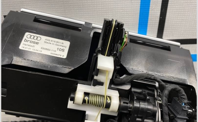 Дисплей системы мульимедиа Audi MMI в торпедо с механизмом складывание.