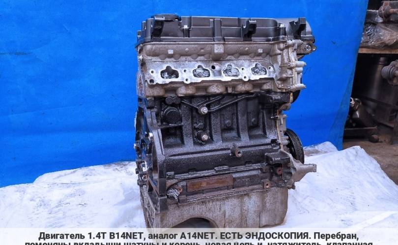 Двигатель 1.4Т B14NET, аналог A14NET. ЕСТЬ ЭНДОСКОПИЯ. Перебран, поменяны вкладыши шатуны и корень, новая цепь и натяжитель, клапанная крышка, сальники, обновлен хон. Ввезен из Европы, есть ГТД. Причина переборки - попала вода в цилиндр.