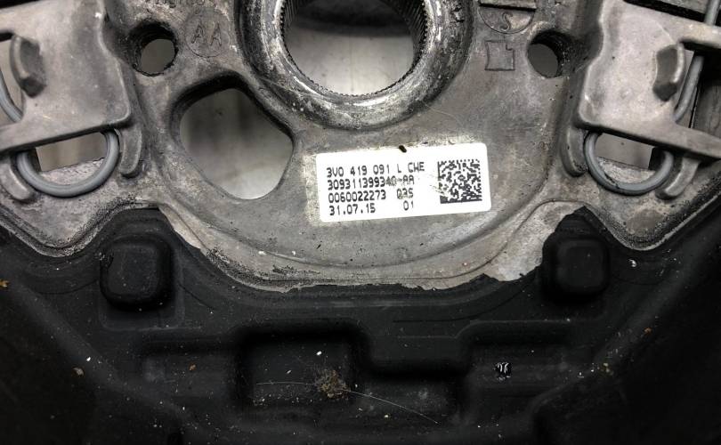 Присутствует потертости. Трехспицевый мультируль MQB 3V0419091L CWE с кнопками 3V0919719A WHS (с телефоном и кнопкой ассистентов, белая подсветка)и нижней накладкой 5E0419685A FOD