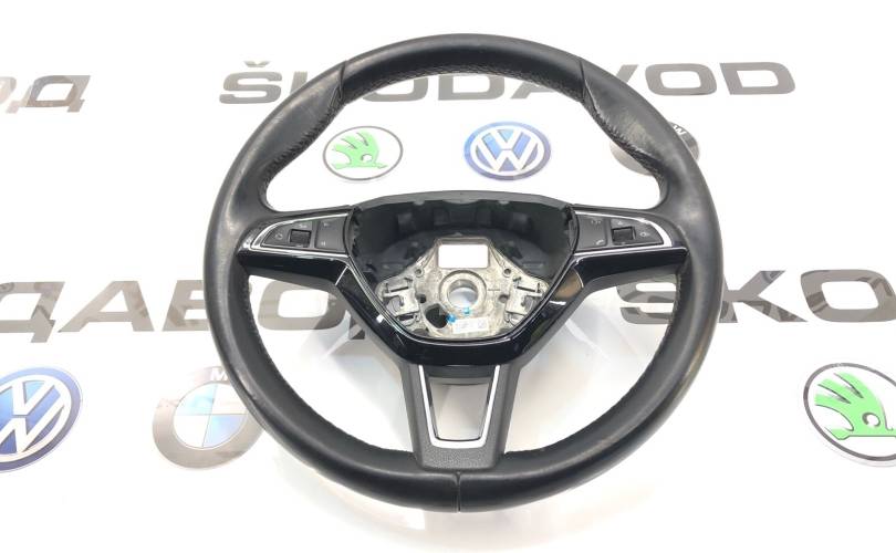 Трехспицевый мультируль Шкода Йети рейсталинг. Кнопки стоят 5E0 919 719F Подсветка кнопок зеленая.