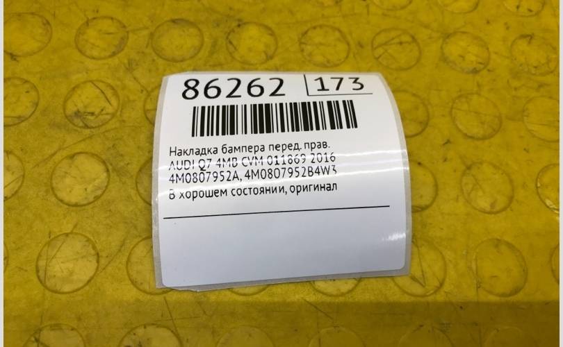 Накладка бампера AUDI Q7 2016 4M0807952B4W3 4MB CVM 011869, передняя правая