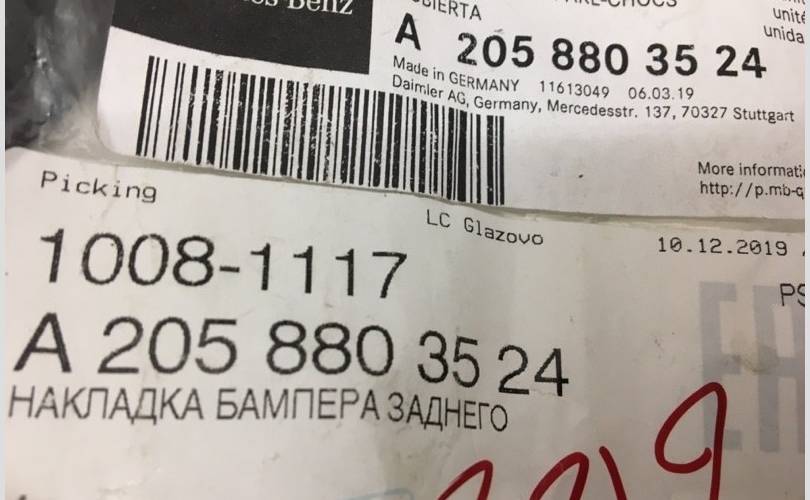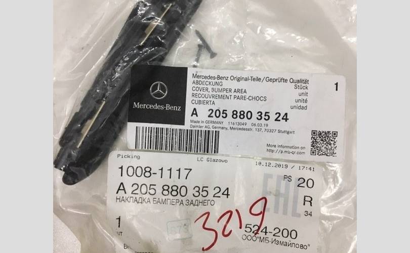 Не нашли 10.09.2023 , см.фото, A2058803524 накладка бампера заднего Mercedes-Benz W213 (E-Klasse), оригинал, новая деталь