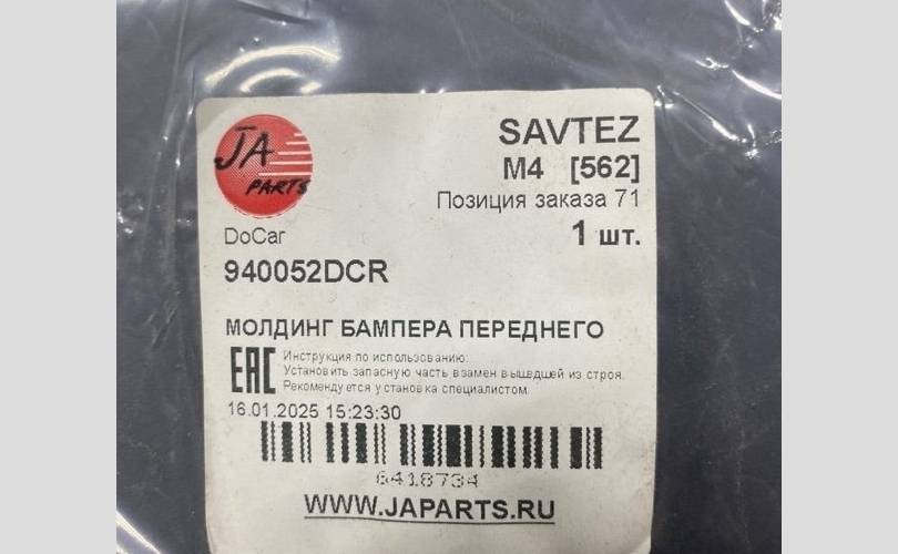 Накладка бампера Volvo XC90 940052DCR, передняя левая