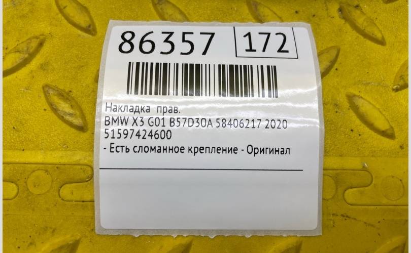 Накладка BMW X3 2020 51597424600 G01 B57D30A 58406217, правая