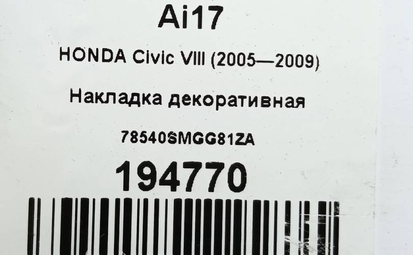 Накладка декоративная на HONDA Civic VIII (2005—2009) 78540SMGG81ZA