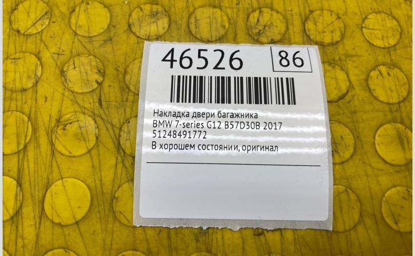Накладка двери багажника BMW 7-series 2017 51248491772 G12 B57D30B