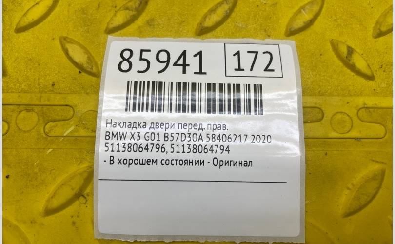 Накладка двери BMW X3 2020 51138064796 G01 B57D30A 58406217, передняя правая