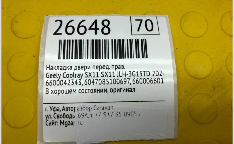Накладка двери Geely Coolray SX11 2020 6047085100697 SX11 JLH3G15TDL8GA4107825, передняя правая