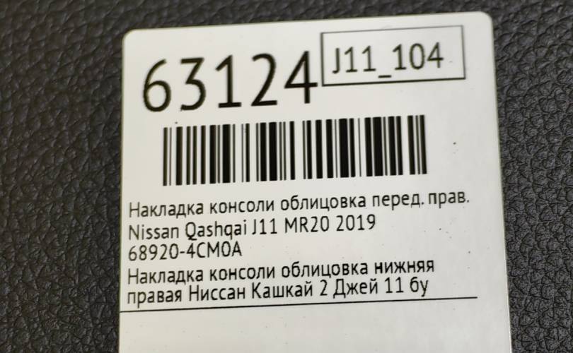 Накладка консоли облицовка Nissan Qashqai 2019 689204CM0A J11 MR20, передняя правая