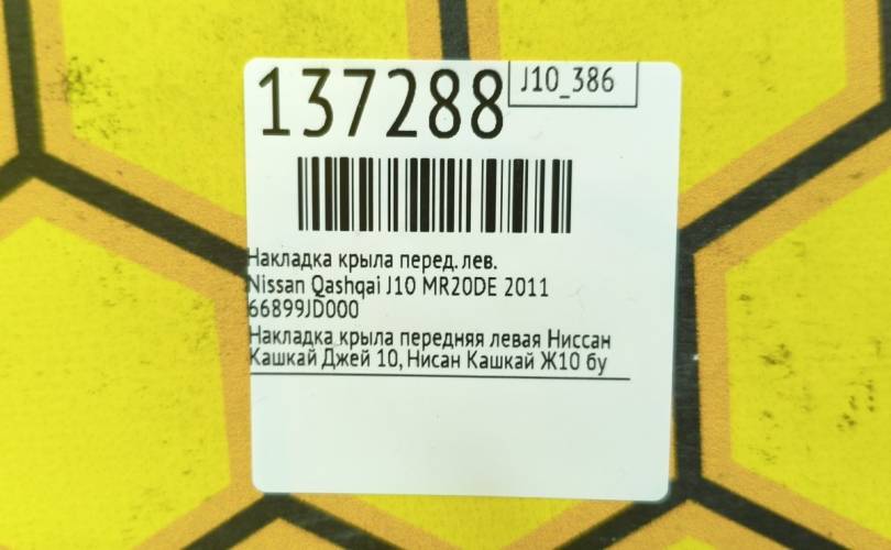 Накладка крыла Nissan Qashqai 2007 66899JD000 J10 MR20DE, передняя левая