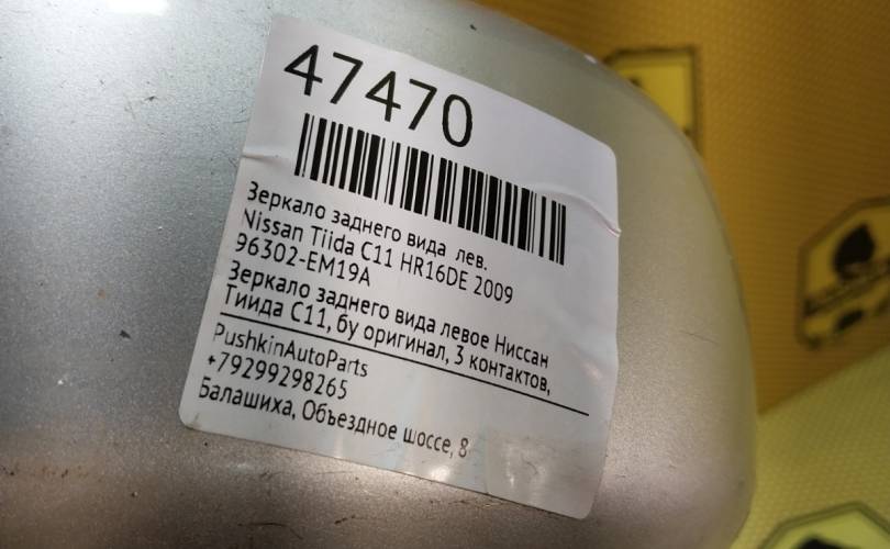 Зеркало левое Ниссан Тиида С11, бу оригинал, 3 контакта