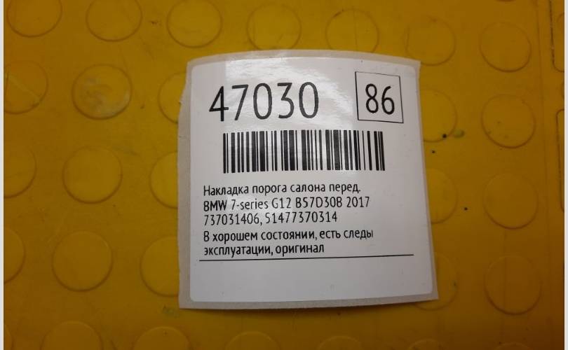 Накладка порога салона BMW 7-series 2017 51477370314 G12 B57D30B, передняя