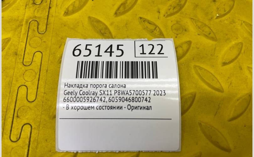 Накладка порога салона Geely Coolray 2023 6600005926742 SX11 P8WA5700577