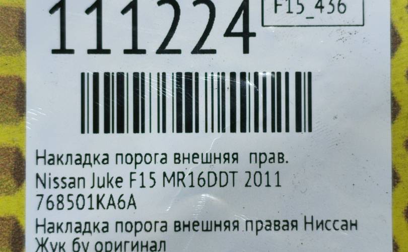Накладка порога внешняя Nissan Juke 2011 768501KA6A F15 MR16DDT, правая