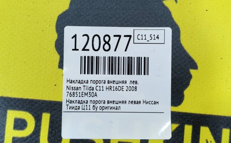 Накладка порога внешняя Nissan Tiida 2008 76851EM30A C11 HR16DE, левая