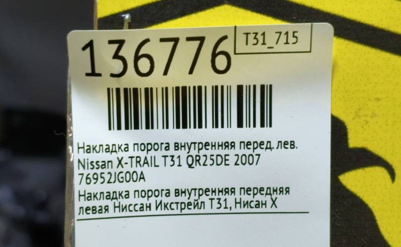 Накладка порога внутренняя Nissan X-TRAIL 2007 76952JG00A T31 QR25DE, передняя левая