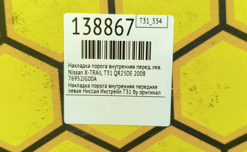 Накладка порога внутренняя Nissan X-TRAIL 2008 76952JG00A T31 QR25DE, передняя левая
