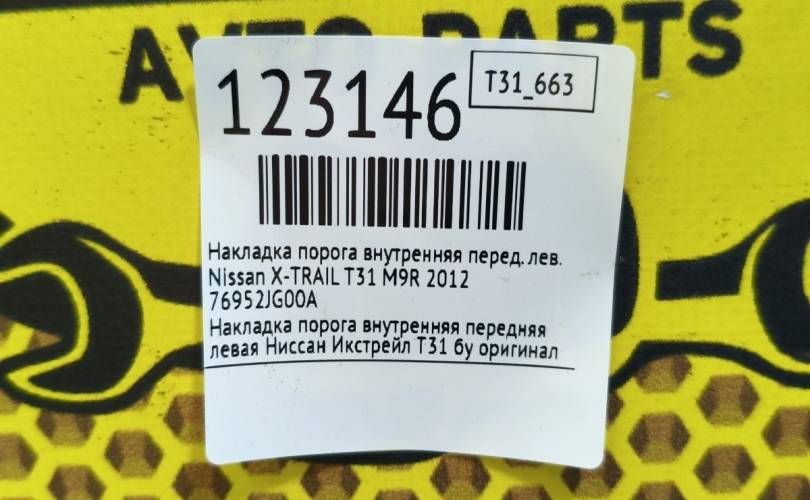 Накладка порога внутренняя Nissan X-TRAIL 2012 76952JG00A T31 M9R, передняя левая