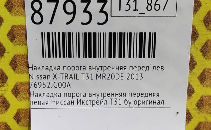 Накладка порога внутренняя Nissan X-TRAIL 2013 76952JG00A T31 MR20DE, передняя левая