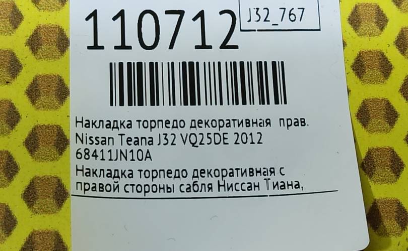 Накладка торпедо декоративная Nissan Teana 2012 68411JN10A J32 VQ25DE, правая