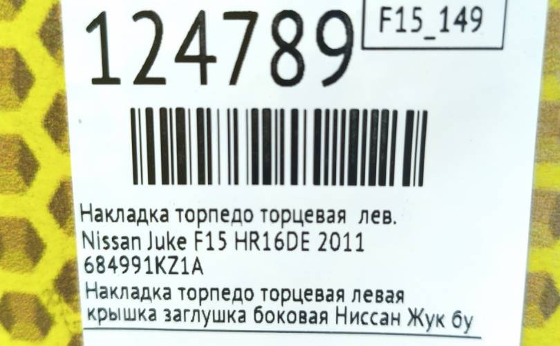 Накладка торпедо торцевая Nissan Juke 2011 684991KZ1A F15 HR16DE, левая
