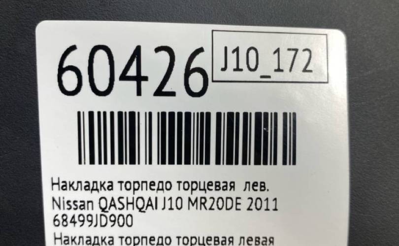 Накладка торпедо торцевая Nissan QASHQAI 2011 68499JD900 J10 MR20DE, левая