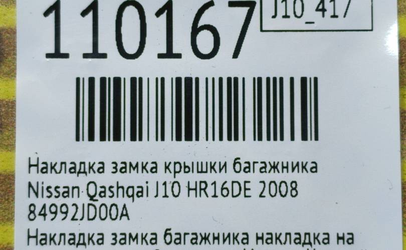 Накладка замка багажника Nissan Qashqai 2008 84992JD00A J10 HR16DE