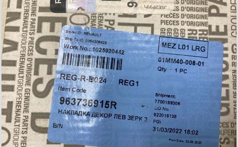 Номер и производитель: 963736915R Renault
