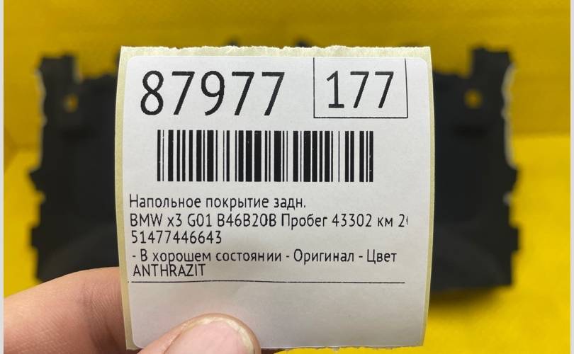Напольное покрытие BMW x3 2022 51477446643 G01 B46B20B ПРОБЕГ 43302 КМ, заднее