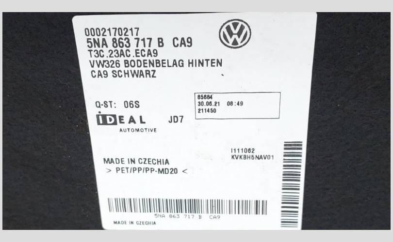Напольное покрытие \ ковролин Volkswagen Tiguan 2022 AD1