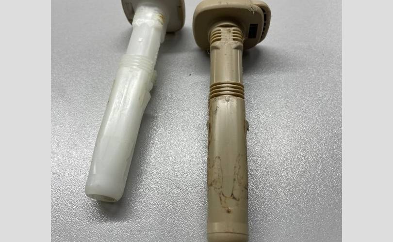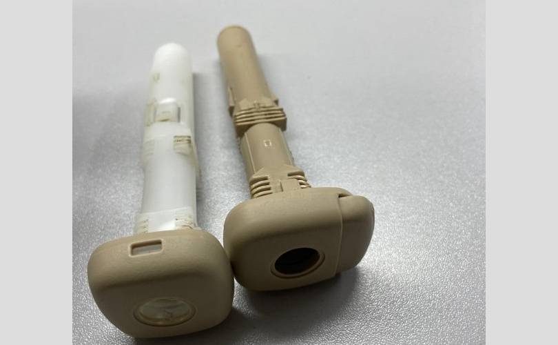 Комплект направляющих подголовника переднего сидения, с кнопкой и без. бежевый цвет под светлый салон