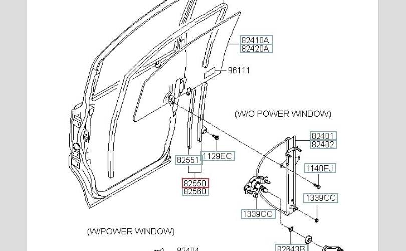Направляющая стекла двери Hyundai H-1 2003 825504A100 A1 D4CB 2.5 CRDI, передняя правая