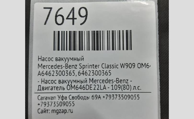 Насос вакуумный Mercedes-benz Sprinter Classic 2018 A6462300365 W909 OM646DE22LA